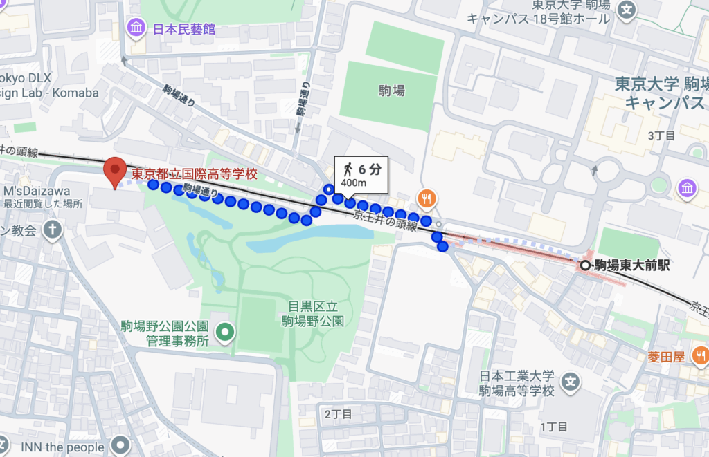 井の頭線『駒場東大学』駅からは徒歩6分と近く、通学の便はとてもいいところです。