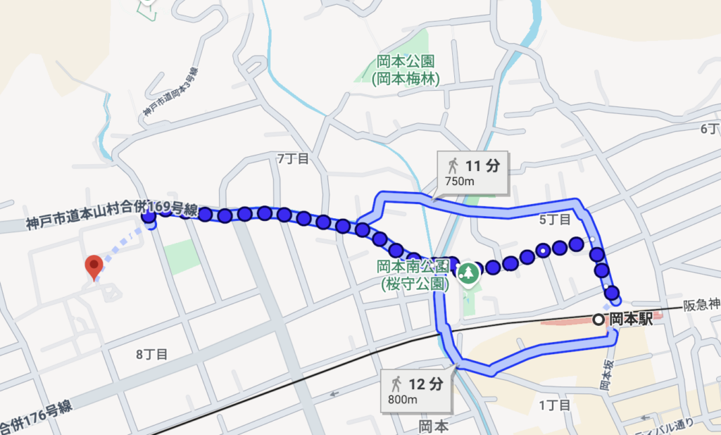 場所は、阪急神戸線『岡本』駅から徒歩11分、JR「摂津本山」駅からも徒歩圏内のところにあります。