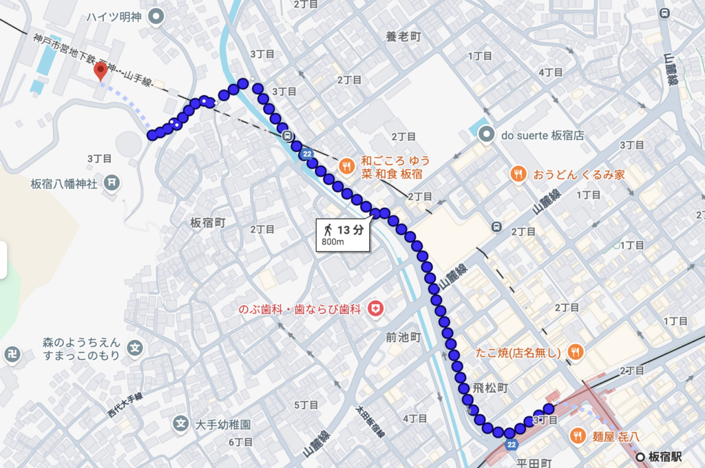 場所は神戸市須磨区に位置し、神戸市営地下鉄西神山手線『板宿』駅から徒歩13分のところにあります。