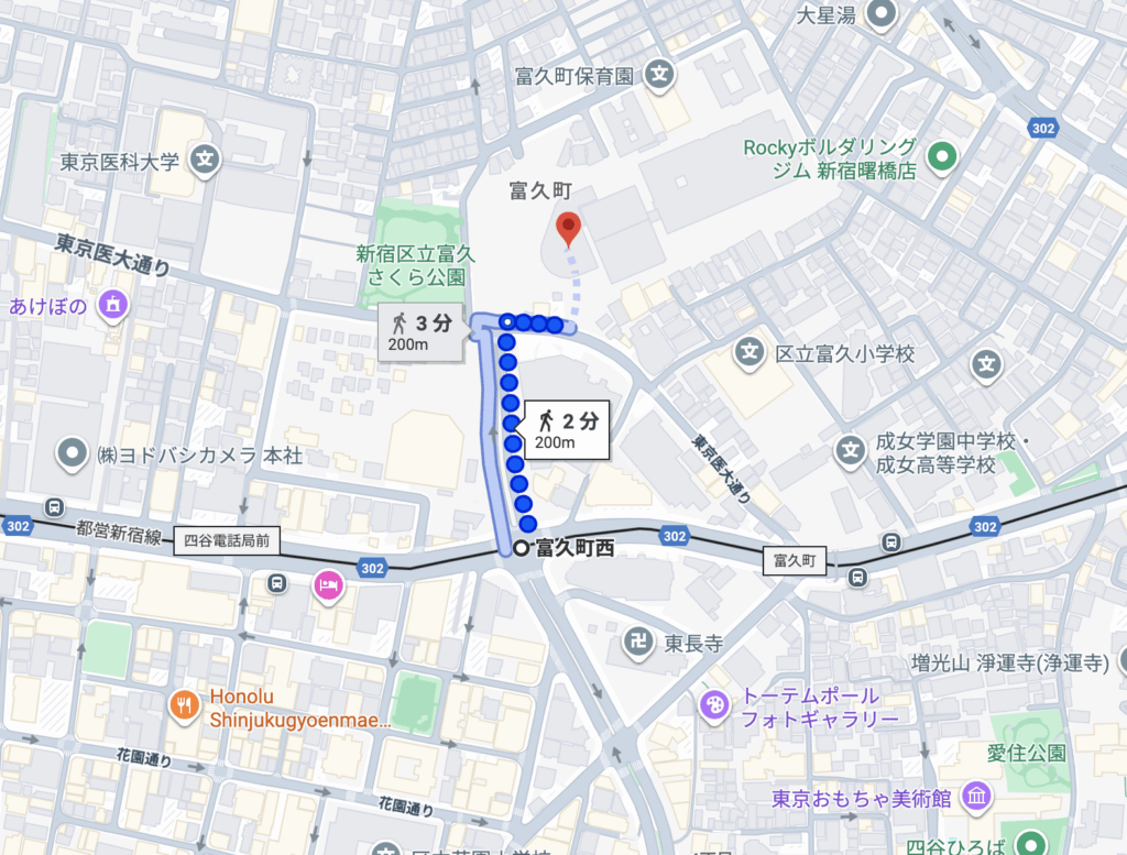 場所は、東京都新宿区富久町にあり都営新宿線の『富久町西』駅からは徒歩2分の立地です。