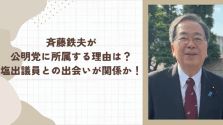 芸能 斉藤鉄夫が公明党に所属する理由は?塩出議員との出会いが関係か! 斉藤鉄夫氏は公明党に所属する衆議院議員です。 彼は、30年以上公明党の一員として国土交通大臣や環境大臣、党の副代表や幹事長など要職を歴任していた重鎮として存在しています。 そんな彼について知りたいと思う人は少なくないです。 今回は、 公明党... 2025.10.11 2025.10.12 芸能